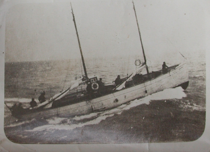 Vue de la vedette de transport 'Fleur de genêt' dans le clapot de Bréhat, 1er quart 20ème siècle (collection particulière)Immatriculation