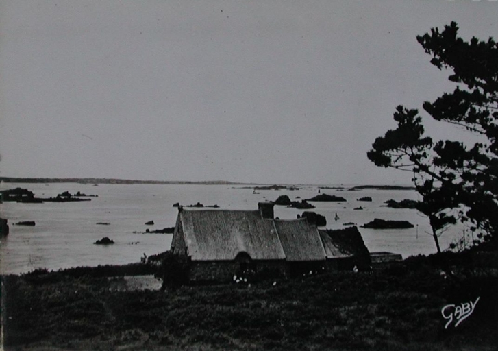 Vue d'une ancienne chaumière à la croix de Maudez, devant le Carpont, ancien atelier du sculpteur André Vermare, vers 1950 (carte postale, collection particulière)Immatriculation