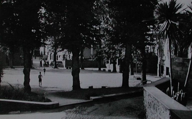 Vue de l'ancienne place du bourg avec ses platanes, vers 1950-60 (carte postale, collection particulière)Immatriculation