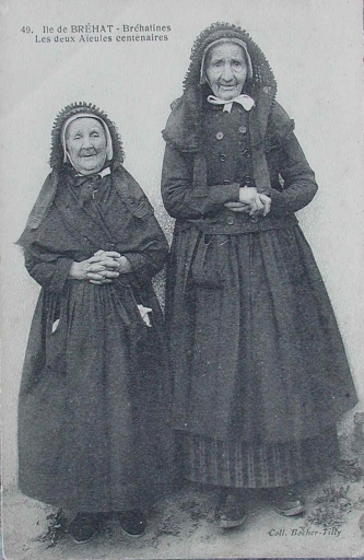 Bréhatines en coiffe et en habits traditionnels : Philomène et Isabeau, 1er quart 20ème siècle (carte postale, collection particulière)Immatriculation