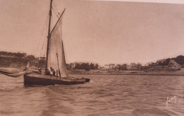 Vue d'un sloop de pêche, au Port-Clos, 1er quart 20ème siècle (carte postale, collection particulière)Immatriculation