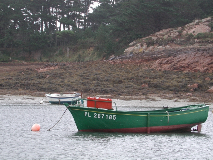 Vue du bateau de pêche de Michel Bocher dans l'anse de la Chambre vers 1990Immatriculation