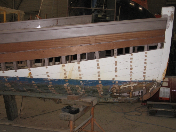Après le changement de la préceinte tribord, changement des bordés inférieurs (collection particulière, Benoit Le Bideau)Immatriculation