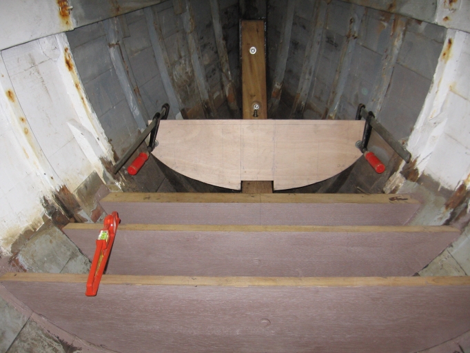 Vue du cloisonnement de la coque avec les varangues neuves en bois massif (collection particulière, Benoit Le Bideau)Immatriculation