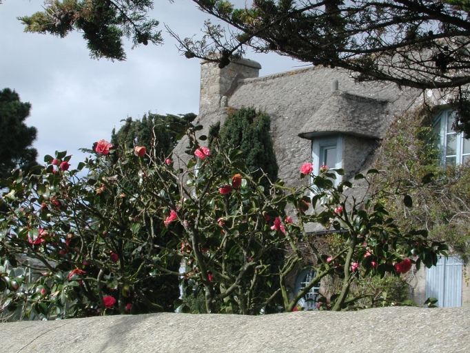 Vue de la couverture traditionnelle d'une maison du Birlot avec sa couverture en lait de ciment et ses petites lucarnesImmatriculation