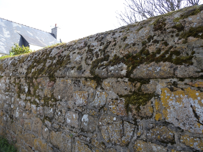 Vue d'un mur de clôture avec son 'chapeau' recouvrant, caractéristique des murets de séparationImmatriculation