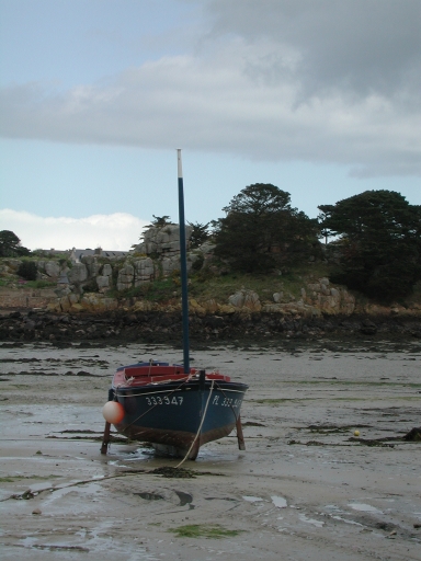 Vue d'un ancien bateau de pêche échoué dans une grève de la l'Est : 'Corinne', immatriculé PL33947Immatriculation