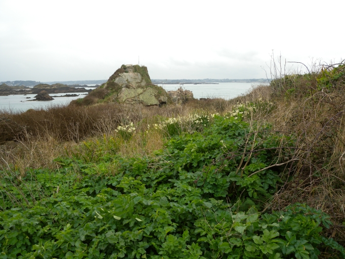 Vue du point culminant de l'Île au Sud-Ouest 'Ar Halvar', avec l'emplacement de la croix au sommet d'un rocherImmatriculation
