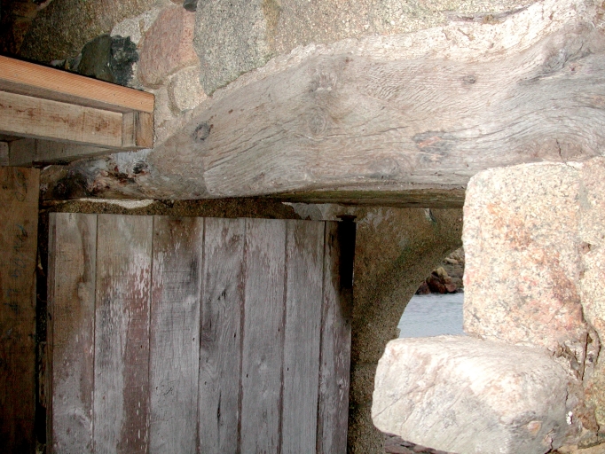 Vue de détail de la poûtre en chêne avec la date de 1632 gravée dans le boisImmatriculation