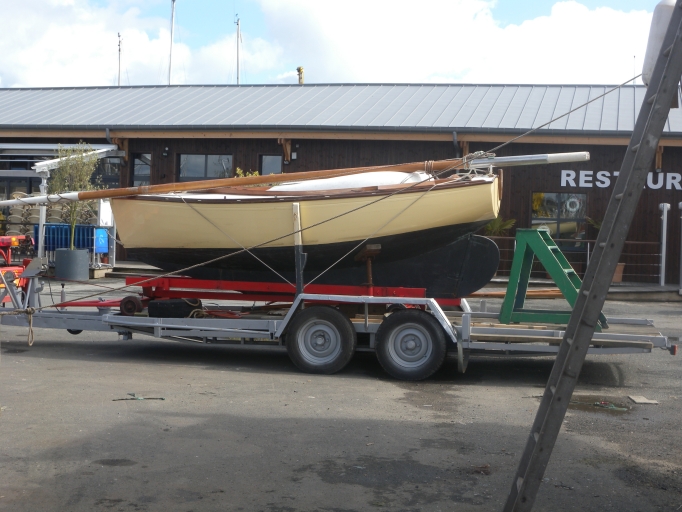 Vue d'un monotype de Bréhat construit par le chantier Mesvel de Carantec, en cours d'hivernage à PaimpolImmatriculation