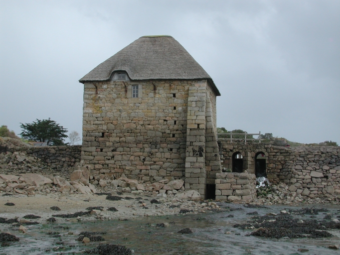 Vue de la façade Ouest du moulin avec ses ouvertures et ses potences d'échafaudageImmatriculation