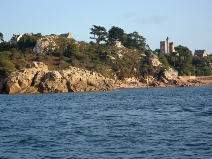 Vue de la côte rocheuse, où domine la haute maison dite 'Le Grand Fort', datée de 1900Immatriculation