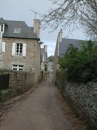 Vue des hautes maisons du bourg avec leurs toits en croupeImmatriculation