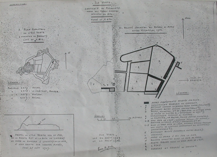 Ensemble des plans relevés entre 1932 et 1950 des ruines du monastère de l'Île Verte (Barbier Pierre, collection particulière)Immatriculation