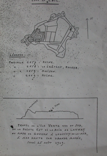 Dans : 'Les vestiges monastiques des îles de l'embouchure du Trieux : l'île Saint-Maudez et l'île-Verte' / Barbier, Pierre, Saint-Brieuc : Les Presses Bretonnes, 1952.Plan.