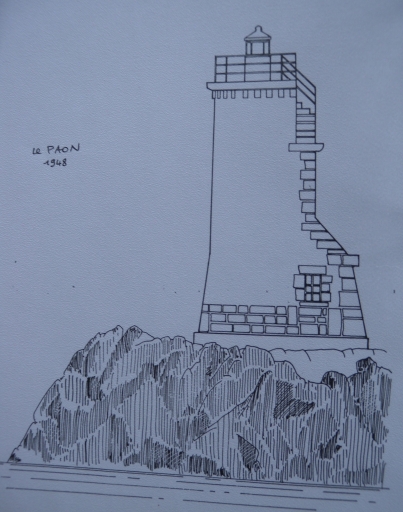Dessin au trait : le phare du Paon, reconstruit en 1948 (Fichou, Jean-Christophe, collection particulière)Immatriculation