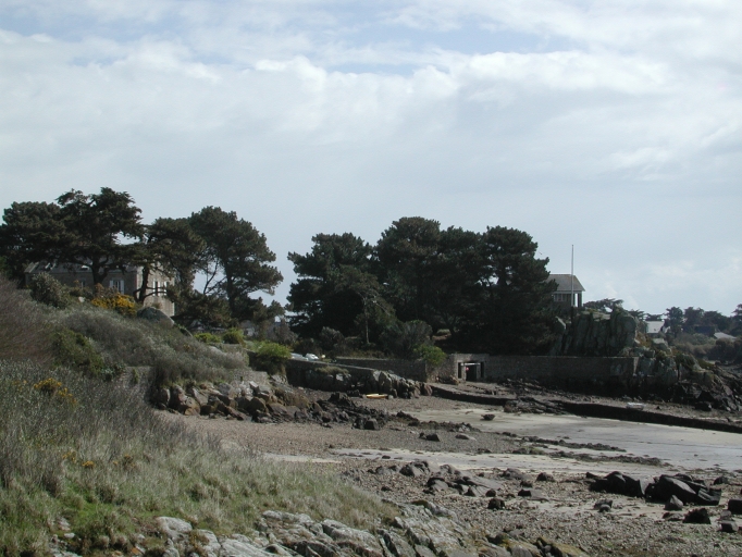 Vue d'une jetée privée d'accès à la mer à côté d'un garage à bateaux (anciens bâtiments des Ponts-et-ChausséesImmatriculation