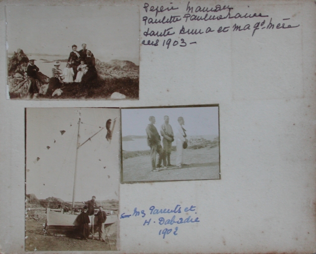 Le peintre Henry Dabadie et Lucien Le Masson à côté du voilier de plaisance (Dug Stu' en 1902 à Bréhat (collection particulière)Immatriculation