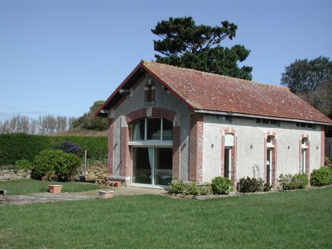 Vue de l'ancien abri de sauvetage transformé en maison d'habitation avec une grande ouverture en verreImmatriculation