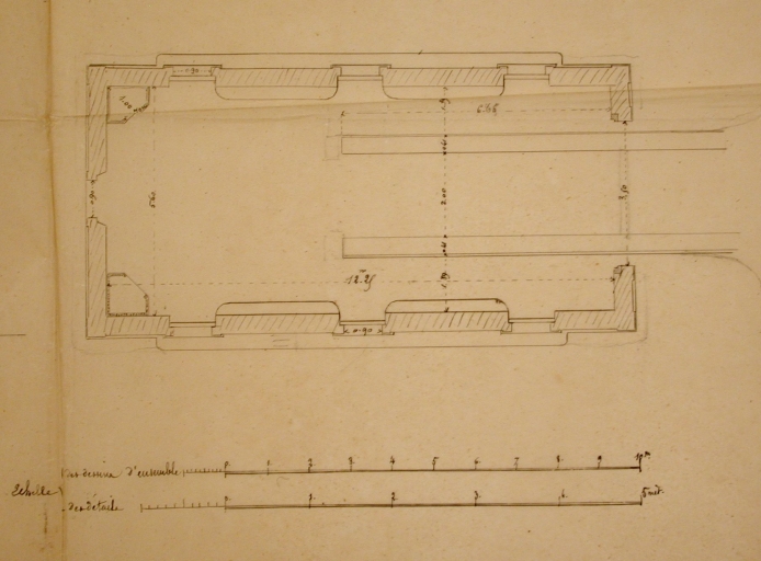 Plan d'ensemble au sol de l'abri de sauvetage, par l'ingénieur Pelaud, 1868 (AD 22)Immatriculation