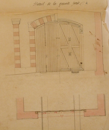 Détail de la grande porte de l'abri de sauvetage, par l'ingénieur Pelaud, 1868 (AD 22)Immatriculation