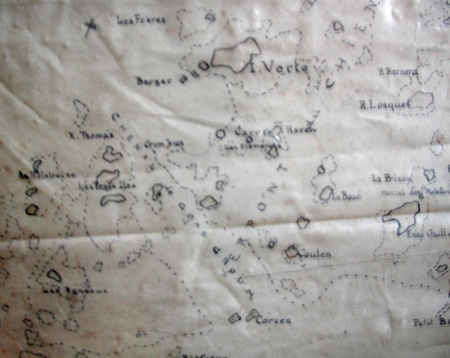 Carte toponymique de Bréhat, non datée, dont 'Les Trois îles', la 'Prison', 'le Bouc', (collection particulière)Immatriculation