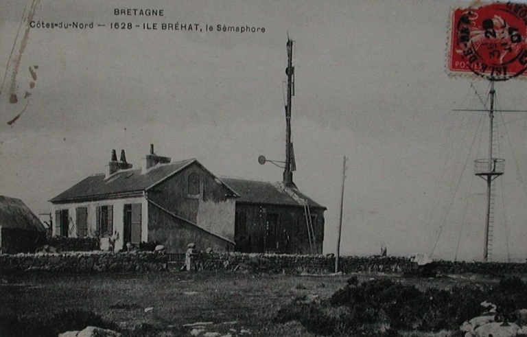 Vue du premier sémaphore dans son enclos, avec son mât sémaphorique, fin 19ème siècle (carte postale, collection particulière)Immatriculation