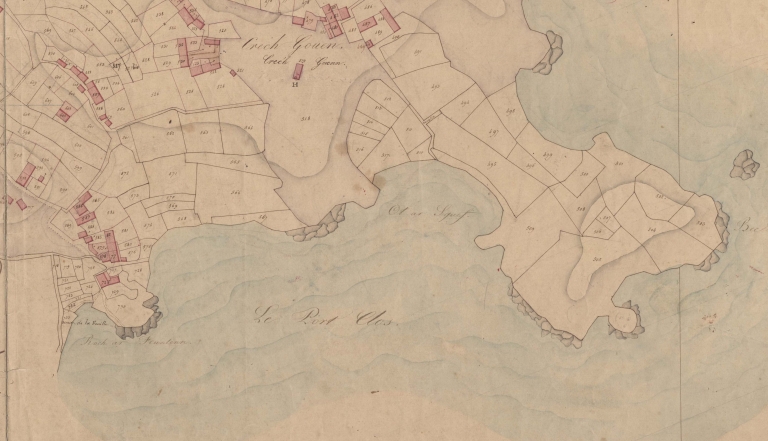 Extrait du cadastre de 1832 : le Port Clos et son front de mer (AD 22)Immatriculation
