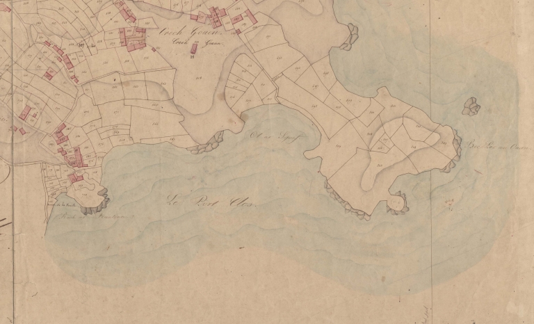 Extrait du cadastre de 1832 : le Port Clos et son front de mer (AD 22)Immatriculation
