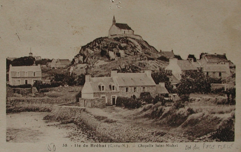 Vue du hameau de Saint-Michel, devant l'étang enclos du Birlot, 1er quart 20ème siècle (carte postale, collection particulière)Immatriculation