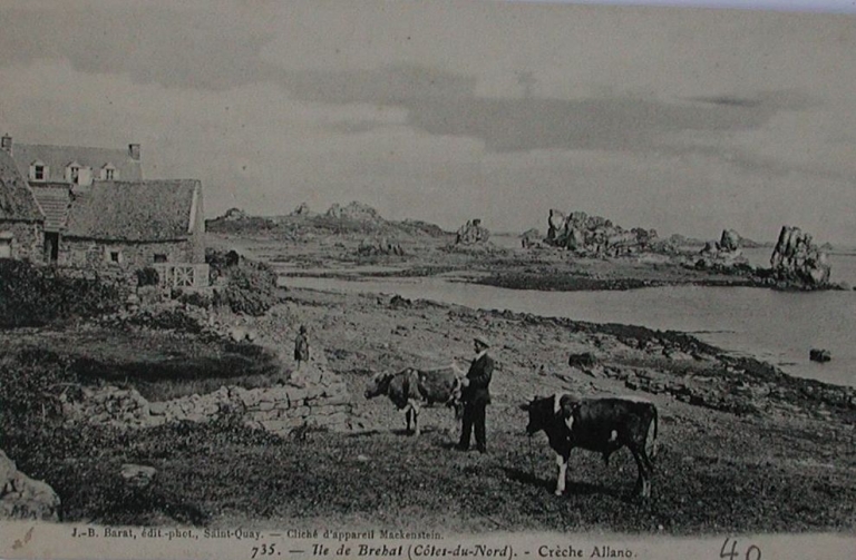 Le village de l'Île Nord : 'Crec'h Allano', au Sud-Est, devant l'îlot Séheres, 1er quart 20ème siècle (carte postale, collection particulière)Immatriculation