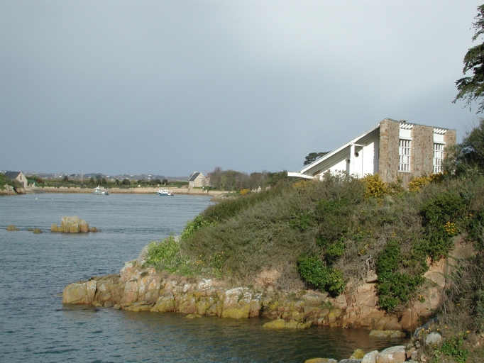 Vue du pignon Sud de la Maison 'Tan ha Dour' construite par l'architecte Pierre Jeanneret et le maçon particulier de Le Corbusier, sur le KarpontImmatriculation