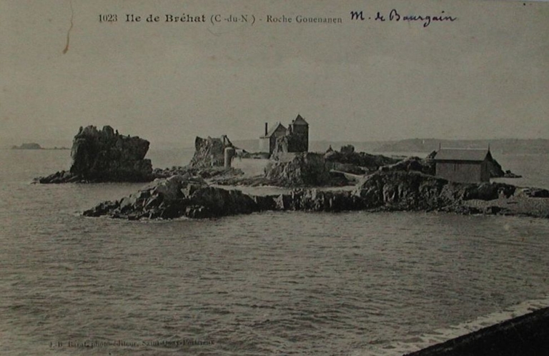 Vue du corps de garde à côté de la villa sur l'îlot de Roc'h Guenanec, 1er quart 20ème siècle (carte postale, collection particulière)Immatriculation