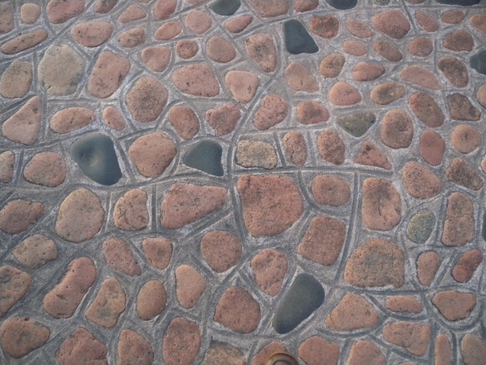 Vue du dallage en galets de la plate-forme supportant l'édificeImmatriculation