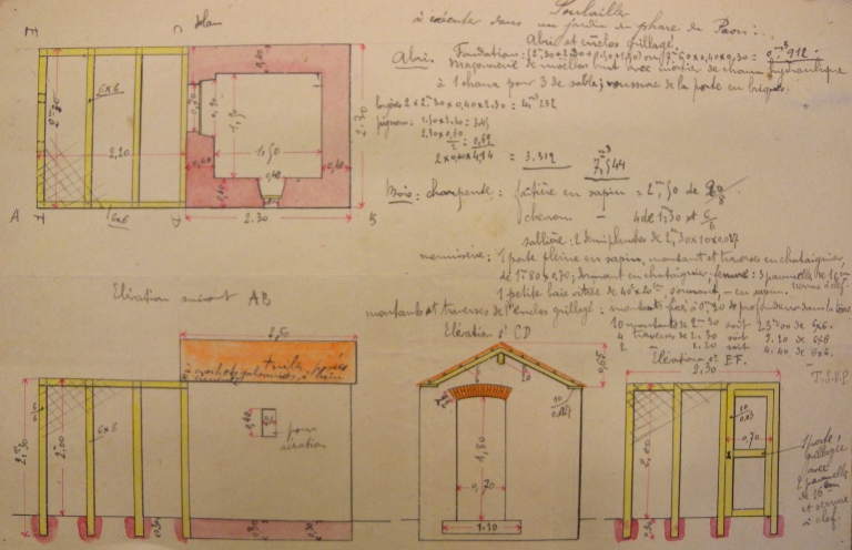 Plan, dessin : projet d'installation d'un poulailler dans le jardin du phare en 1911 (AD 22)Immatriculation