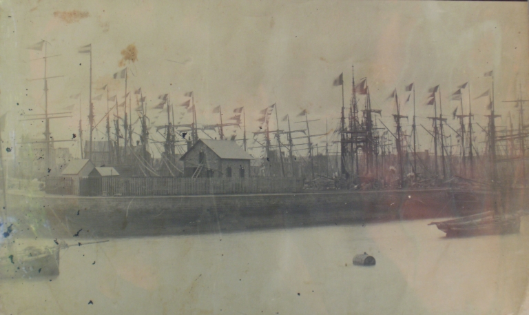 Vue du Quai Neuf avec les goélettes dans le premier bassin, 1er quart 20ème siècle (carte postale, collection particulière)Immatriculation