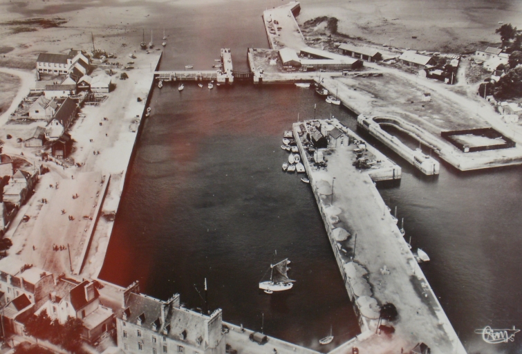 Vue du port de Paimpol, avant 1952 : la 'Boîte à sel' à l'emplacement de la salle des fêtes (carte postale, collection particulière)Immatriculation