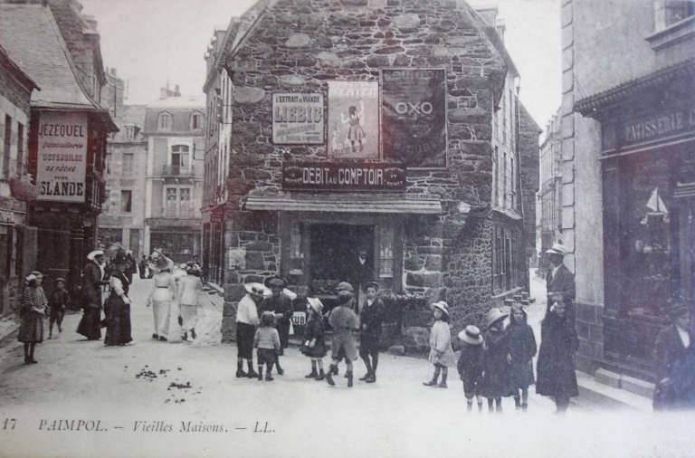 Ancienne maison à colombage, Soizig-Dalmart, café puis commerce d'étoffes, avant transformation, à l'angle de rue de la Vieille Poissonnerie, 1er quart 20ème siècle (carte postale, collection particulière)Immatriculation