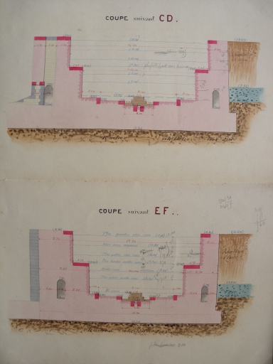 Plan : coupe en travers de la forme de radoub, 1883 (AD 22)Immatriculation