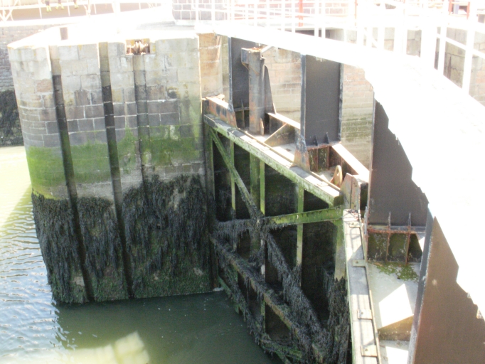 Vue de détail des portes métalliques des nouvelles écluses en avalImmatriculation