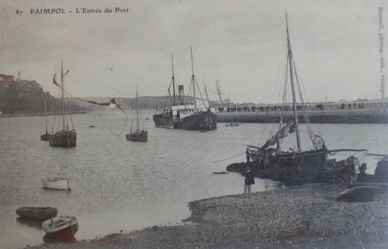 Débarquement de goémon à la cale de Bréhat, 1er quart 20ème siècle (carte postale, collection particulière)Immatriculation