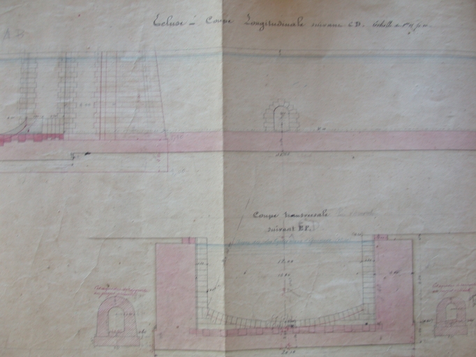 Dessin : coupe longitudinale d'un vantail de la 1ère écluse, 1875 (AD 22)Immatriculation