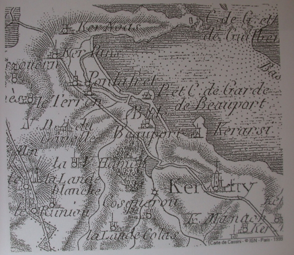 Extrait de la carte de Cassini, fin 18ème siècle : le front de mer de Beauport et Kérity (IGN, 1999)Immatriculation