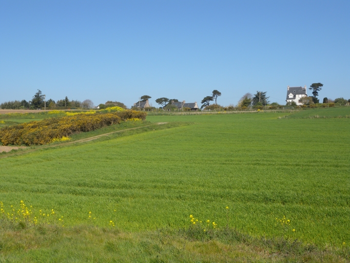 Vue des parcelles cultivées et du bât littoral sur la côte Sud-EstImmatriculation