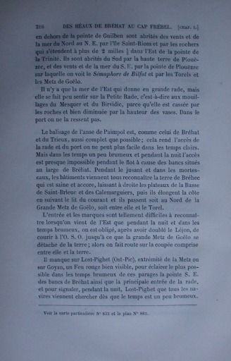 Dans : 'Pilote côtier, Côtes Nord de la France, troisième partie : Des Héaux de Bréhat au cap de la Hague' /Thomassin, Anastase, Paris : Challamel aîné, 1875, p. 216.Ouvrage imprimé.