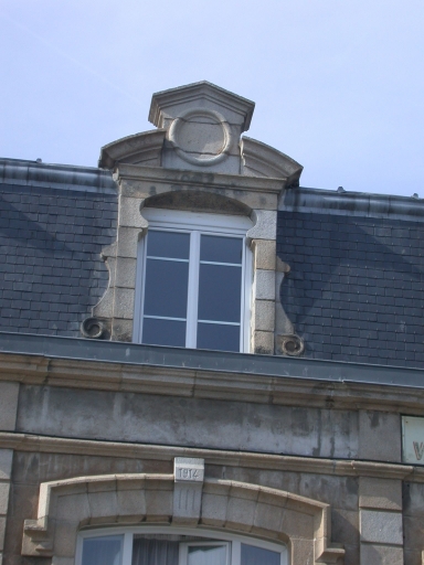 Vue de l'ancienne mairie avec la date portée sur le fronton d'une fenêtre : 1914Immatriculation