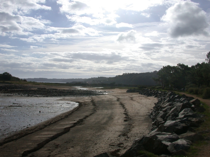 Vue des enrochements à l'entrée de l'ancien havre de CruckinImmatriculation