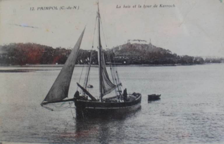 Vue d'une gabarre entrant au port de Paimpol, sous grande voile et foc, 2ème quart 20ème siècle (collection particulière)Immatriculation