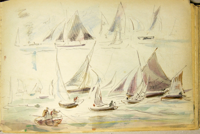 Les régates : manoeuvres de yachts, 4ème quart 19ème siècle (extrait des carnets de Faudacq, collection particulière)Immatriculation