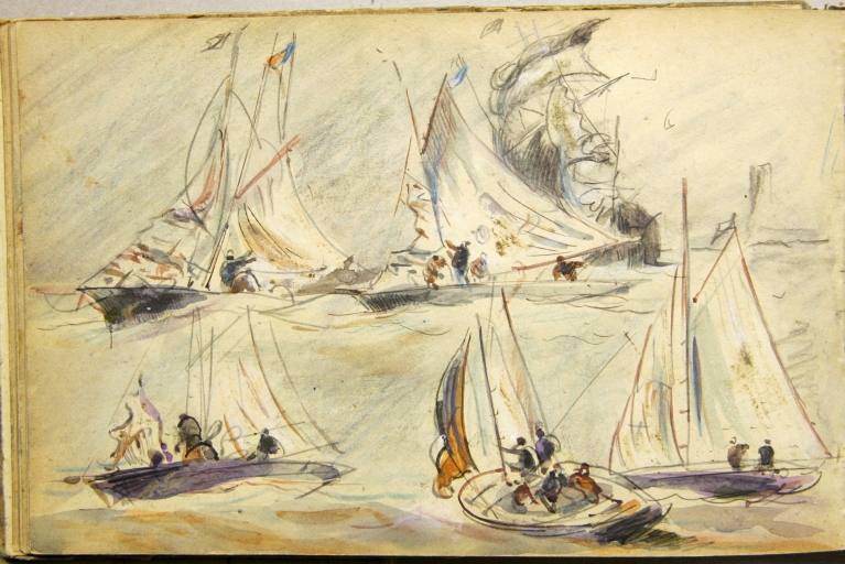 Manoeuvres de yachts en régate, 4ème quart 19ème siècle (extrait des carnets de Faudacq, collection particulière)Immatriculation
